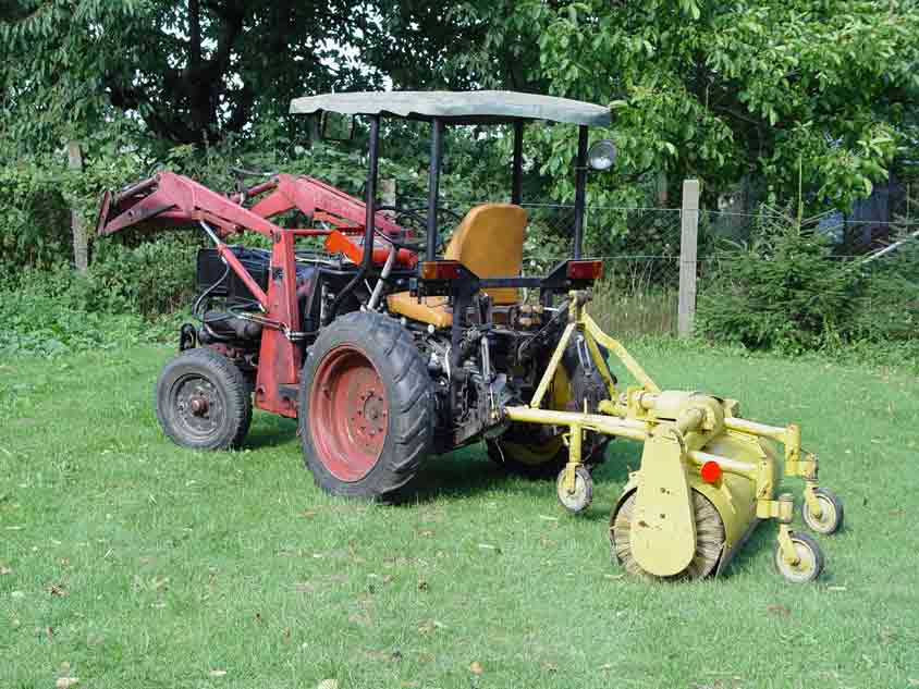 Kehrmaschine T925 zum UT 082 link zum Bild zur Trockenreinigung von freien Flächen, Wegen und Stallanlagen. Arbeitsbreite in Stufen verstellbar 950 - 1.550 mm, Arbeitsgeschwindigkeit 2 - 6 km/h, minimale Durchfahrbreite 1.200 mm, Masse 200 kg IAP (Preis 1991) 7.180,- Deutsche Mark (DDR) IAP (Preis 1987) 5.800,- Deutsche Mark (DDR)